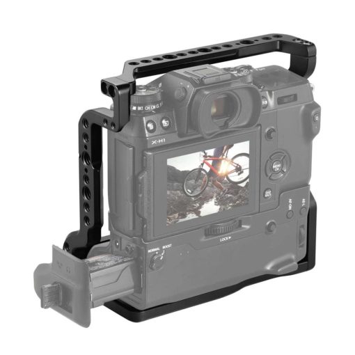 SmallRig Cage for Fujifilm X-H1 Camera with Battery Grip 2124 is the newest camera cage specially designed for Fujifilm X-H1 camera. It features an all-round protection for the camera and the battery grip. The compact design provides you a very comfortable handheld experience when holding the cage with camera mounted inside. Three built-in NATO rails are compatible with accessories with NATO clamps, like NATO Handle 1688 for handheld shooting. Arri 3/8”points on the top and at the side could be mounted with Magic Arm with Arri Locating Pins 2115 for stability and anti-twist purpose for monitor. It comes with threaded holes in the front for Rod Clamp 1943, thus it enables 15mm rail support for matte box and follow focus operation. In addition, an abundance of 1/4”-20 and 3/8”-16 threaded holes are equipped around the cage for mounting accessories